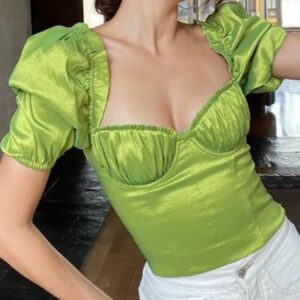 Designer Party Puff Sleeve Sweetheart Neck Fitted Blouse
