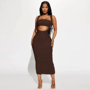 Stylish Plain Two Piece Maxi Dresses For Women