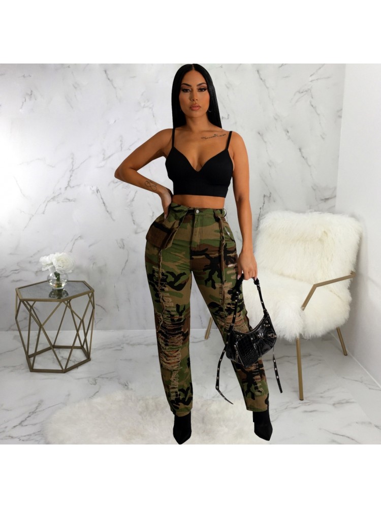 HomeBOTTOMFashion Camouflage Ripped Slim Pants