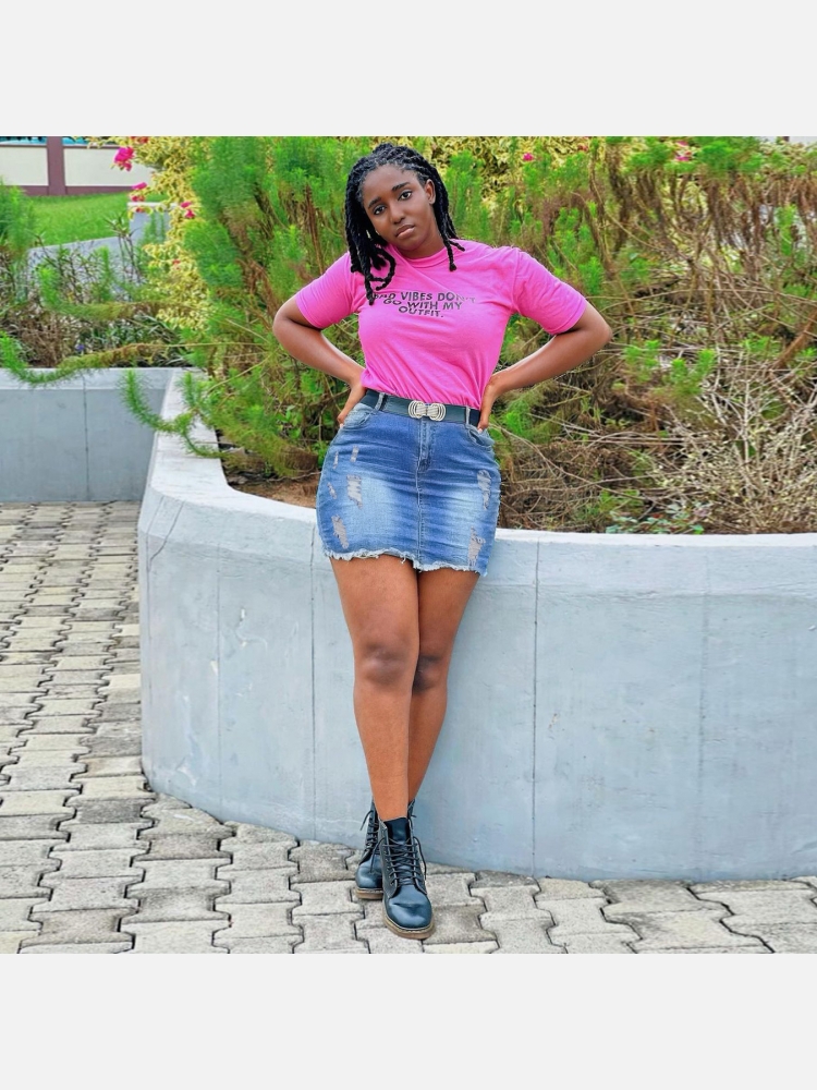 • Sweet Cool Pure Color Zipper Denim Skirt