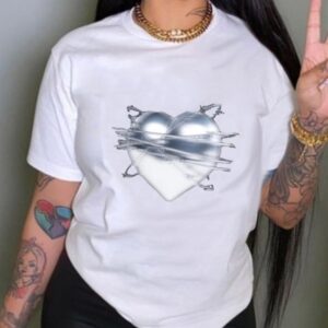 • Heart Graphic Crew Neck Loose Casual Women T-Shirt