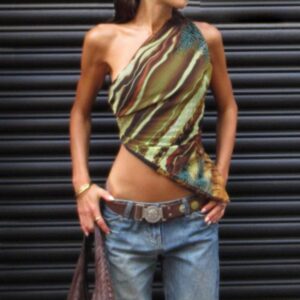 • Contrast Color Vintage One Shoulder Tank Top