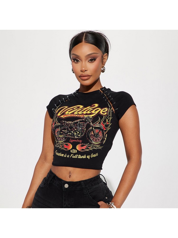 HomeTOPPin Graphic Sexy Street Black Crop T Shirts