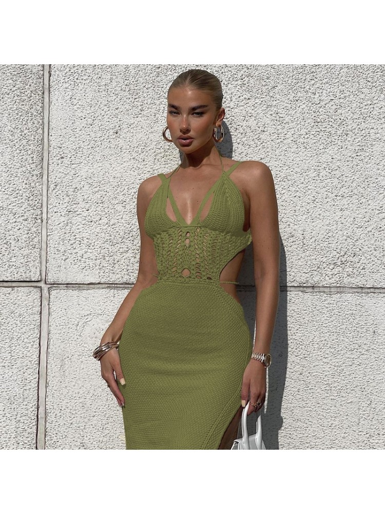 Sexy Knitted Hollow Out Backless Slit Dress