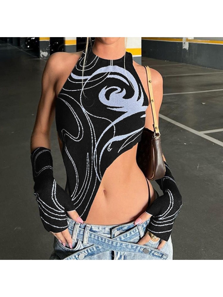 HomeTOPSexy Printing Backless Irregular Tank Tops