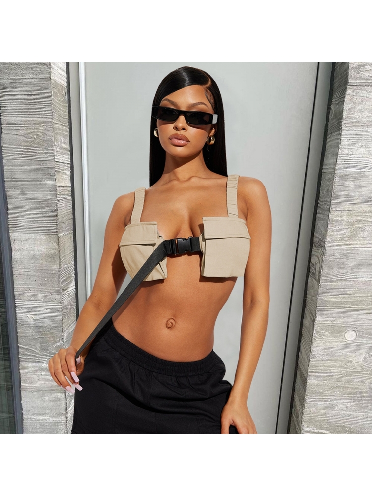HomeTOPSexy Wrap Pocket Crop Tank Tops