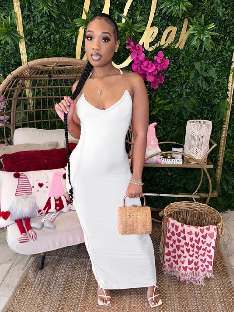 Solid Transparent Suspenders Bodycon Maxi Dress