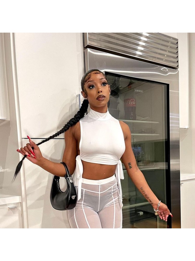 Tie Wrap Mock Neck Cropped Sleeveless Tank Tops