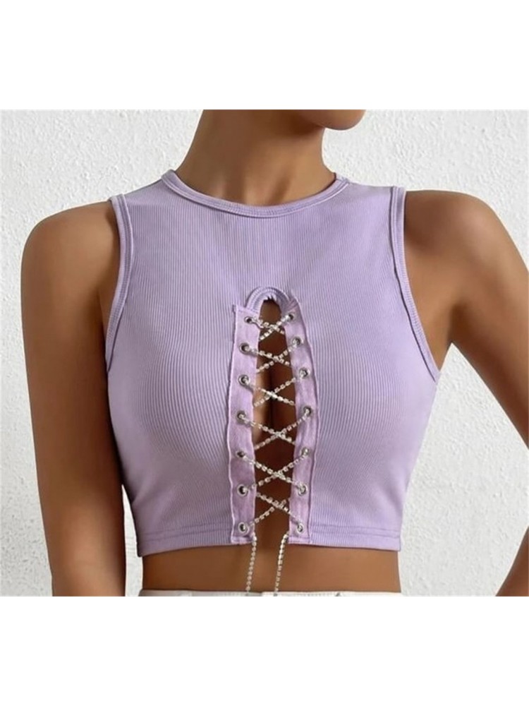 HomeTOPWomen’s Round Neck Hollowed Out Bandage Camisoles